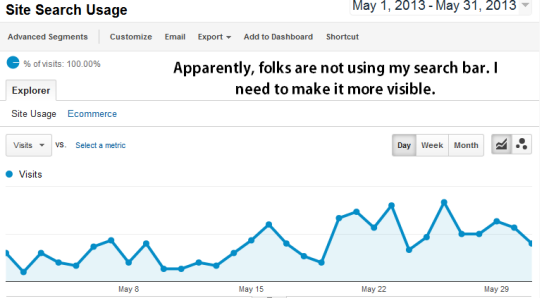You can set up a custom search bar on your site relatively easily by inserting a bit of code into the header or sidebar of your website. This allows you to potentially keep many more visitors engaged with your site and as such, hopefully purchasing whatever it is that you sell there. By tracking how many people used your site’s search bar in Google Analytics, you can see how engaged your visitors actually are.